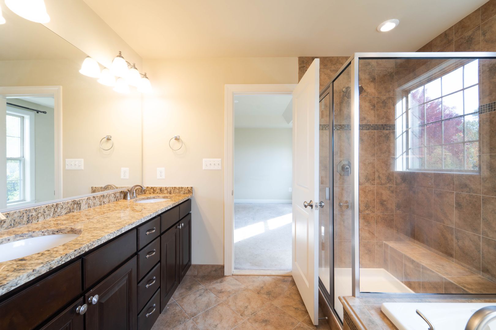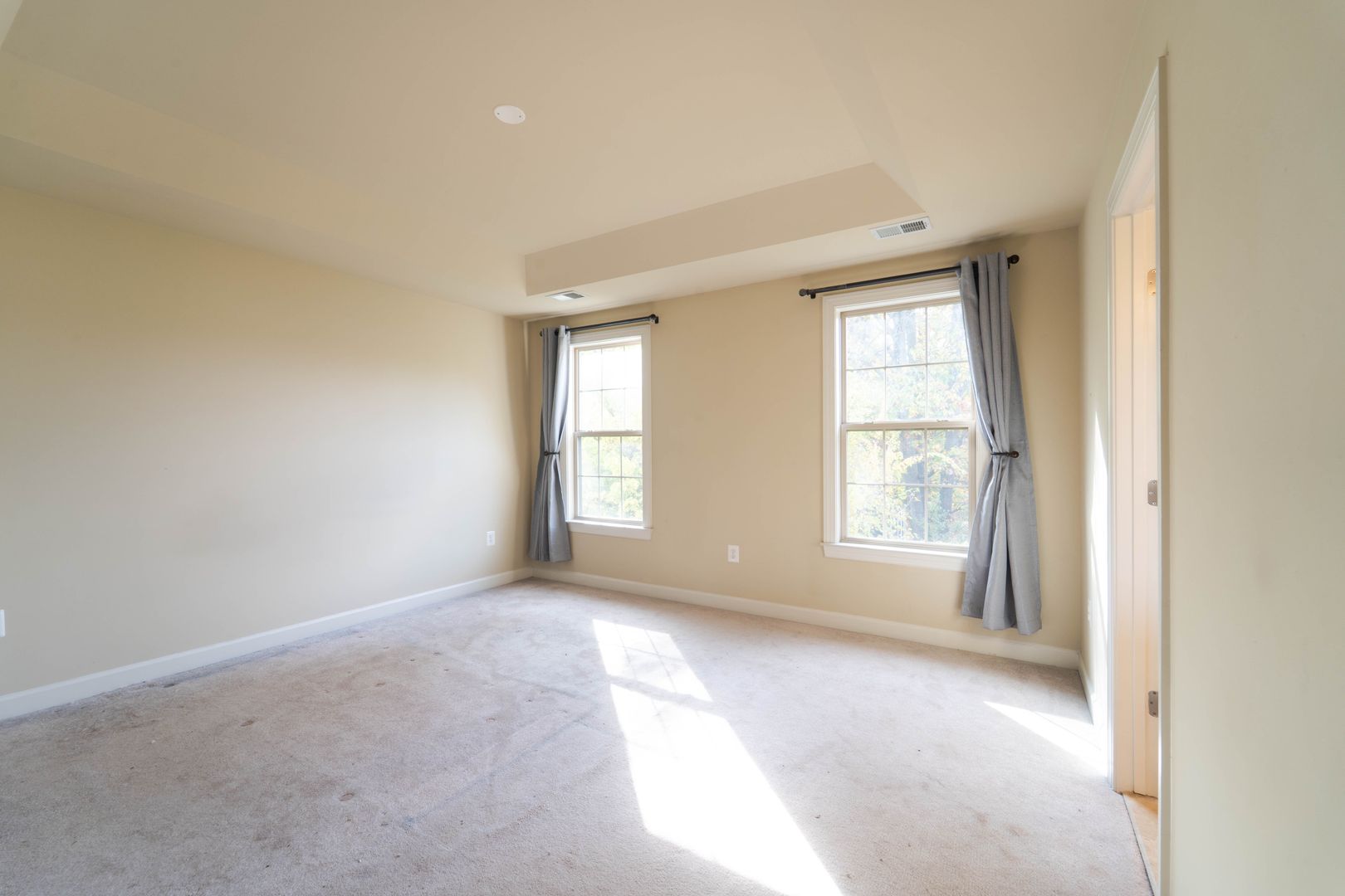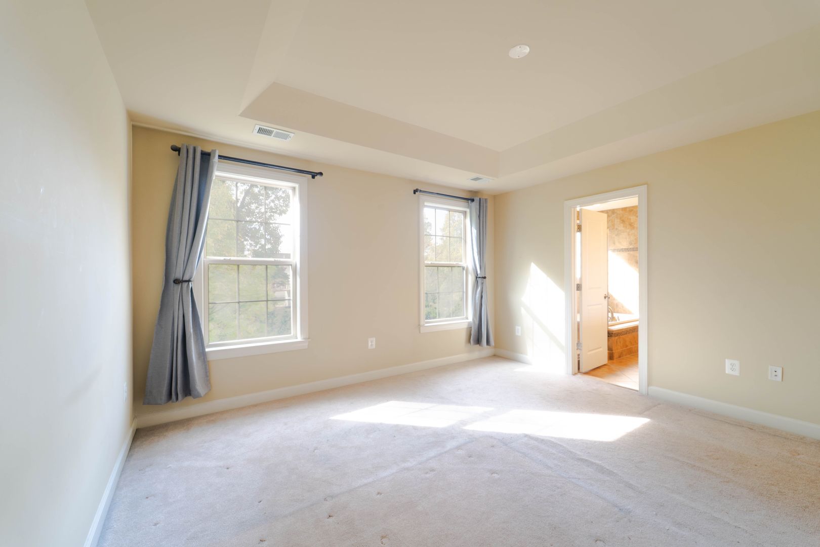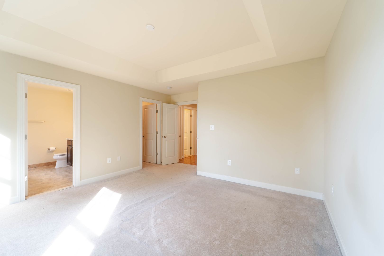 Upstairs, hardwood continues through the hallway and stairs, while the carpeted bedrooms provide a cozy retreat. The large primary suite features a tray ceiling and includes a spacious bath with a relaxing garden tub, separate shower, and dual vanities.