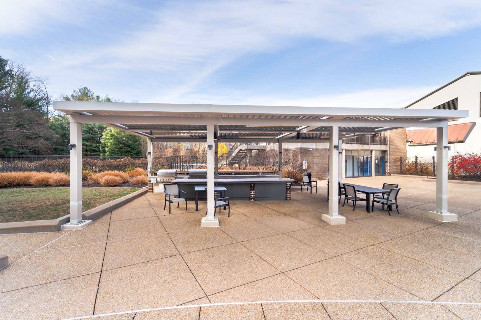 • 2 Outdoor pools & scenic walking paths winding around a park like space with outdoor picnic areas including grills