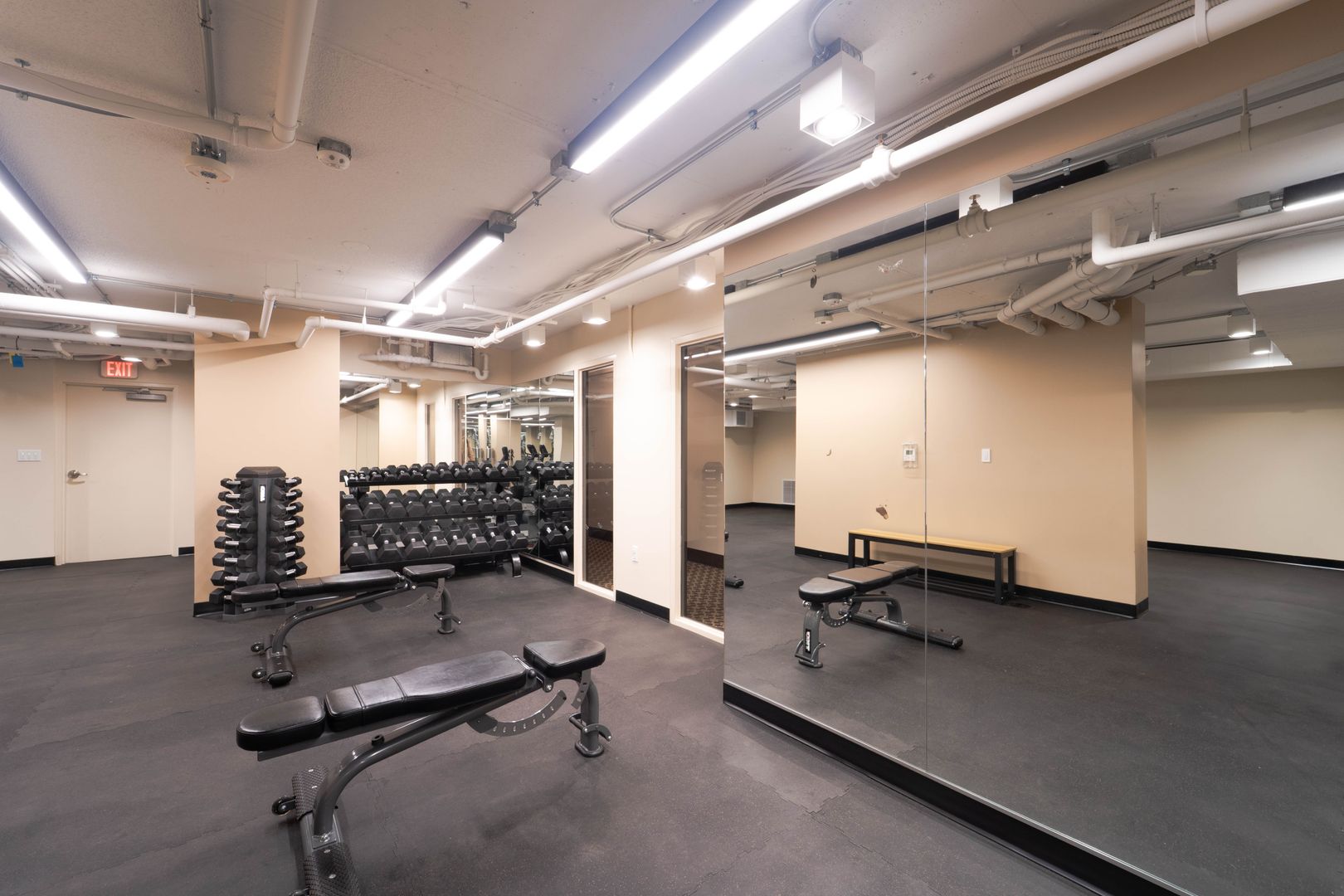• State-of-the-art fitness center with yoga area, free weights, exercise machines, sauna & showers