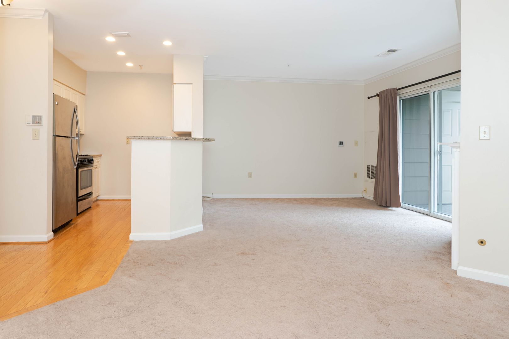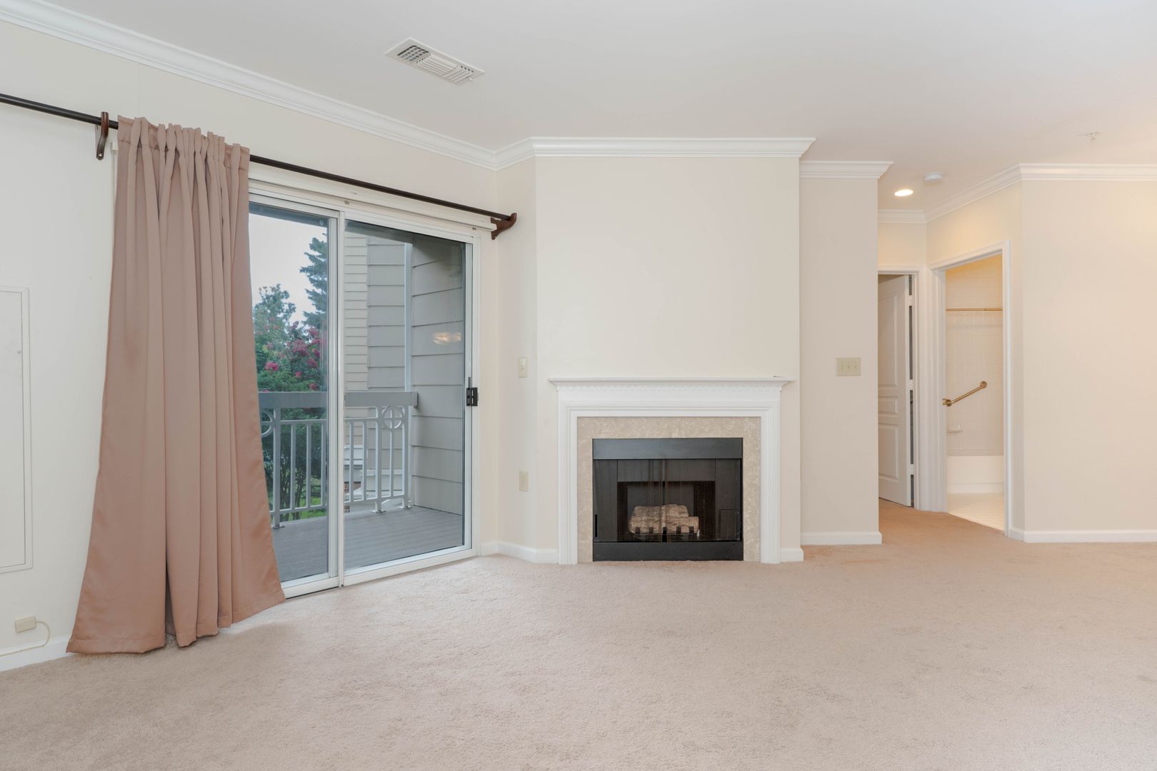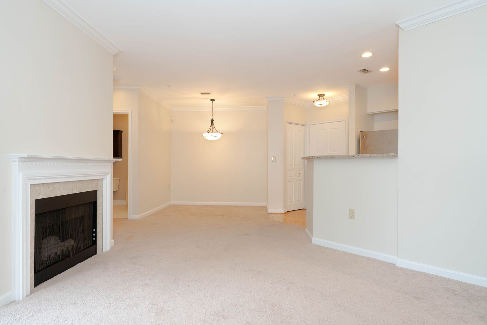 Well-maintained condominium located in the Worldgate community, offering exceptional convenience and access to area amenities. The kitchen is equipped with stainless steel appliances, including a refrigerator, range, microwave, and dishwasher, and provides a practical layout for everyday living. The combined living and dining area features wall-to-wall carpeting and a gas log fireplace, with a sliding glass door that opens to a private balcony overlooking the landscaped courtyard. The spacious bedroom includes a walk-in closet and direct access to a generously sized bathroom with a tub and shower combination. Recent updates include a new washer and dryer.
