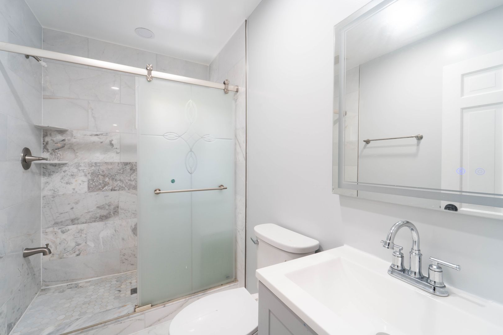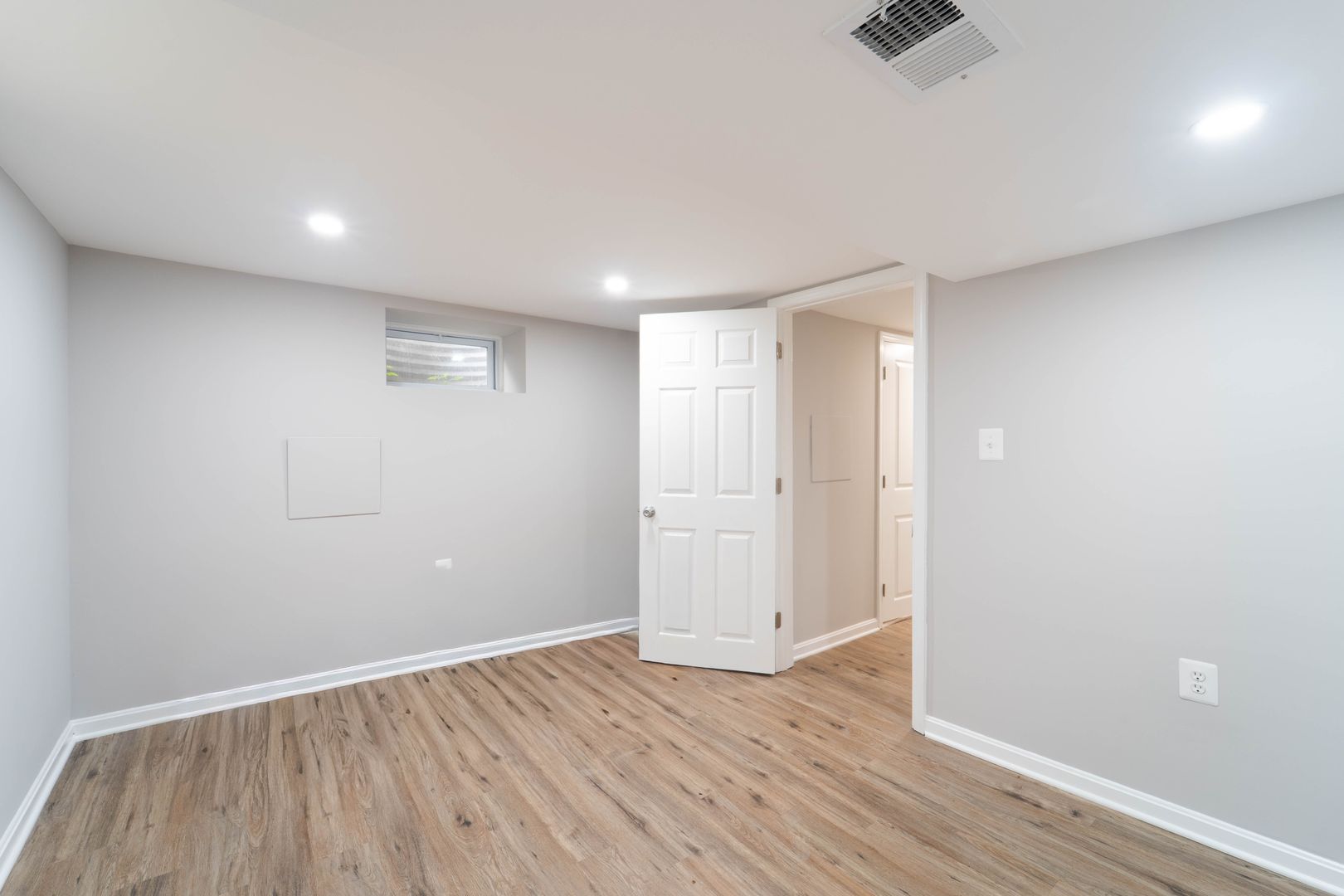 Upstairs, you’ll find two additional bedrooms and a full bathroom, all with hardwood flooring. The basement offers flexible living space with a family room that includes a second wood-burning fireplace, a kitchenette, laundry area, bedroom, and full bathroom, plus walk-out access to the backyard.
